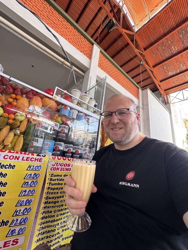 Danach führte mich mein Weg in die Markthalle San Camilo. Eine Verkäuferin erklärte mir die unzähligen Kartoffelsorten Perus, und an einem der Saftstände gönnte ich mir einen frischen Shake. Es war faszinierend zu sehen, wie vielfältig das peruanische Alltagsleben ist. Anschließend machte ich Halt im Oso Café, einer kleinen Rösterei, in der auch selbst geröstet wird. Der Cappuccino dort war hervorragend – einer der besten Kaffees meiner bisherigen Reise.